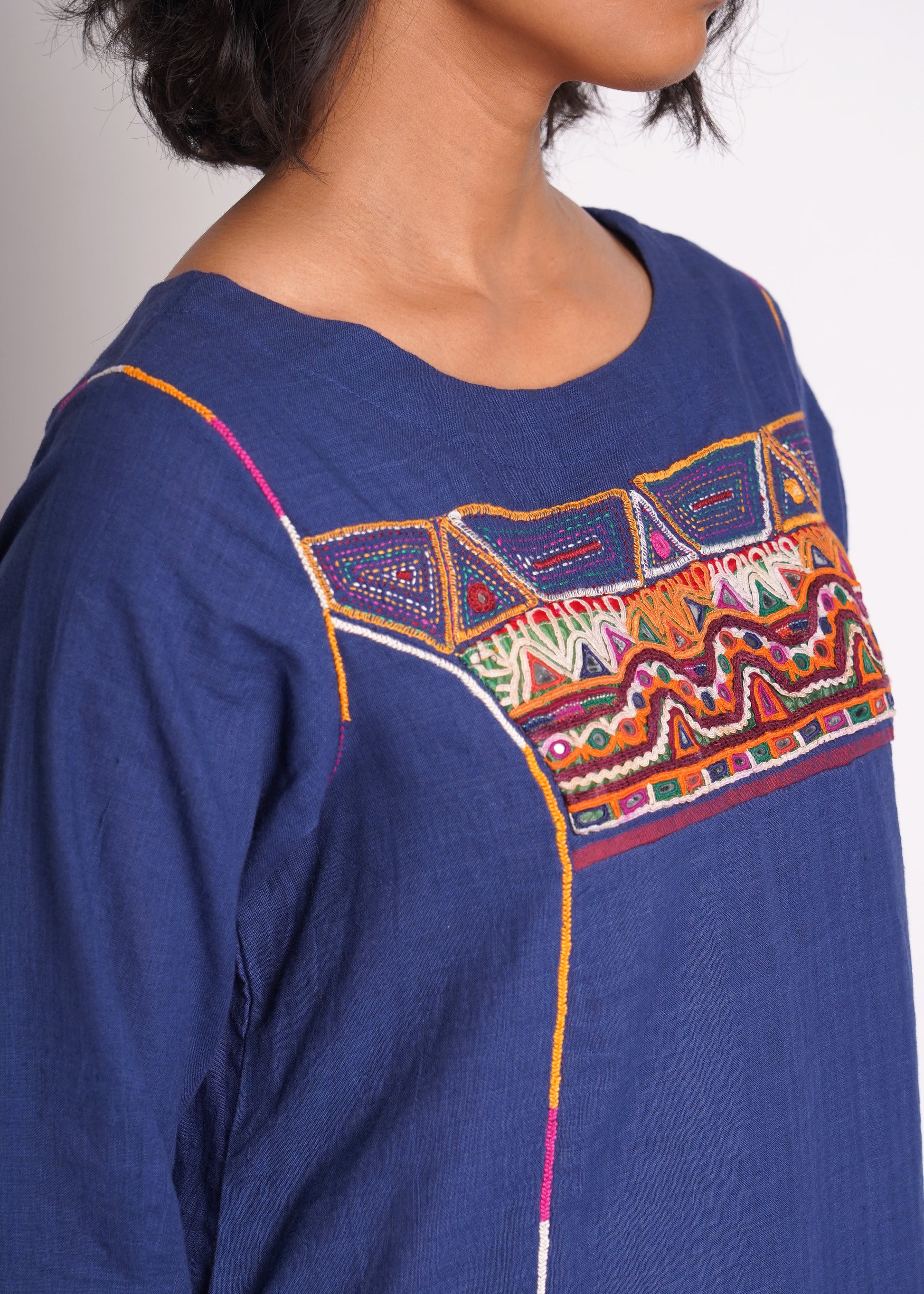 Fine details, vintage hand embroidery, pockets on both sides.