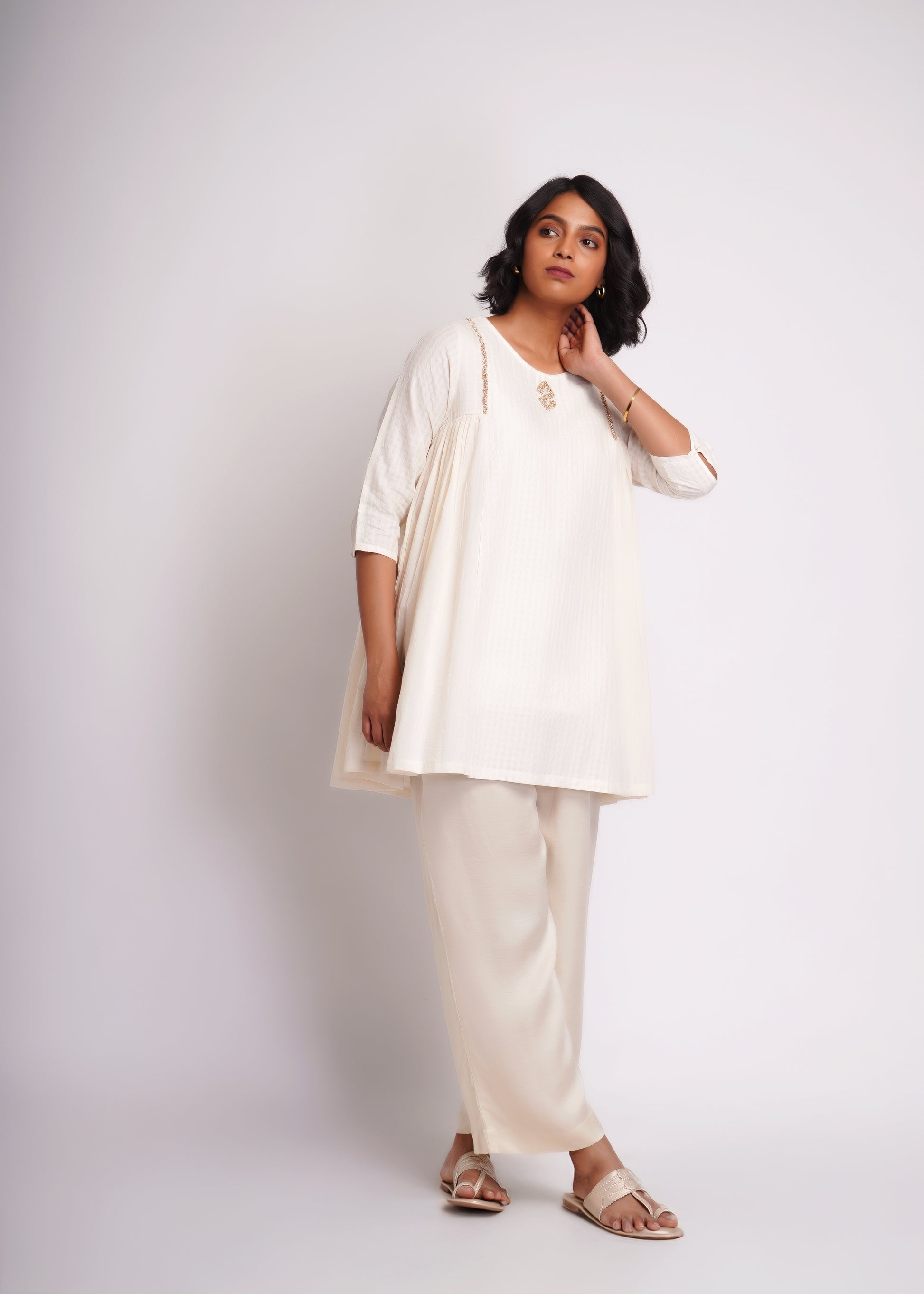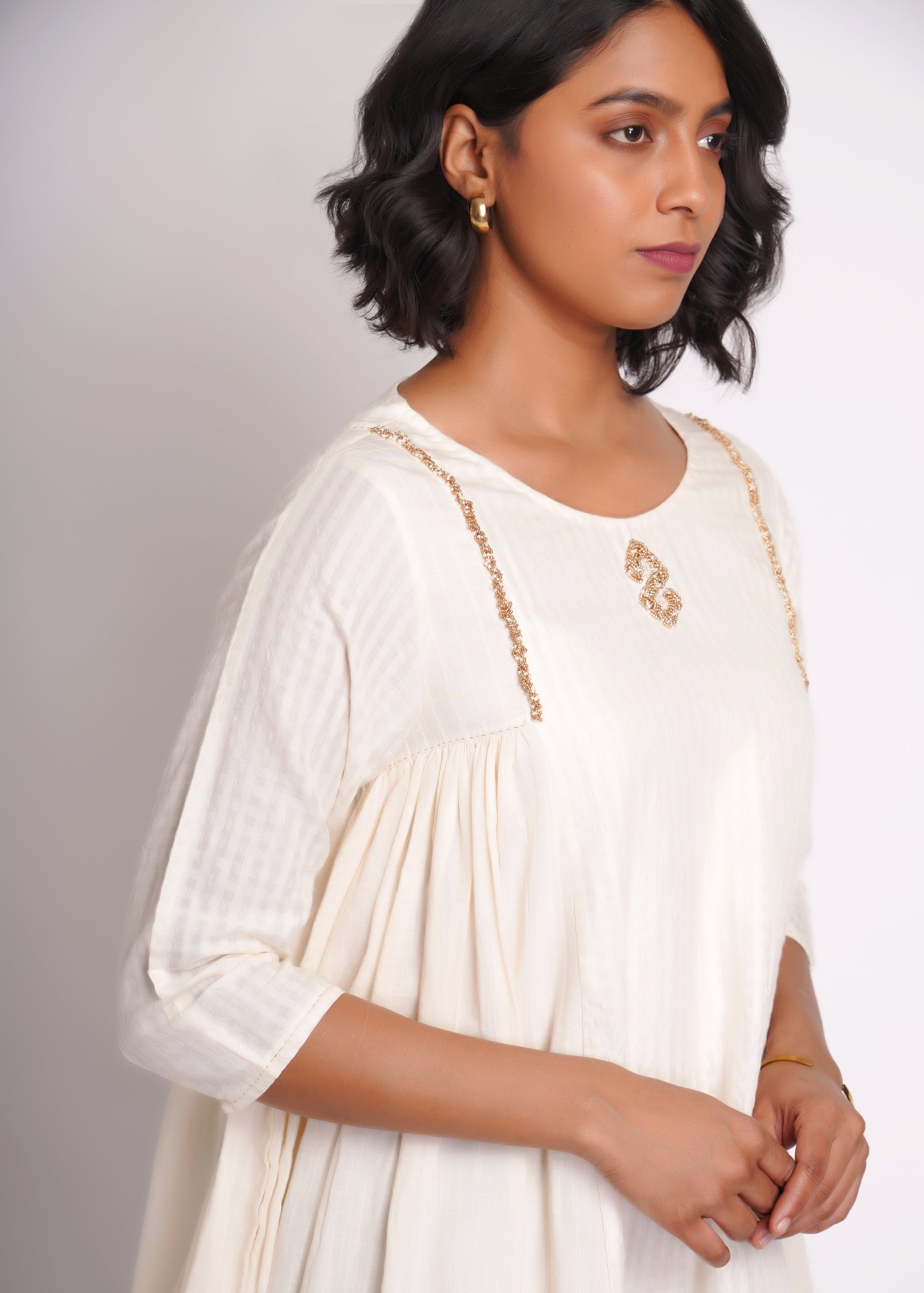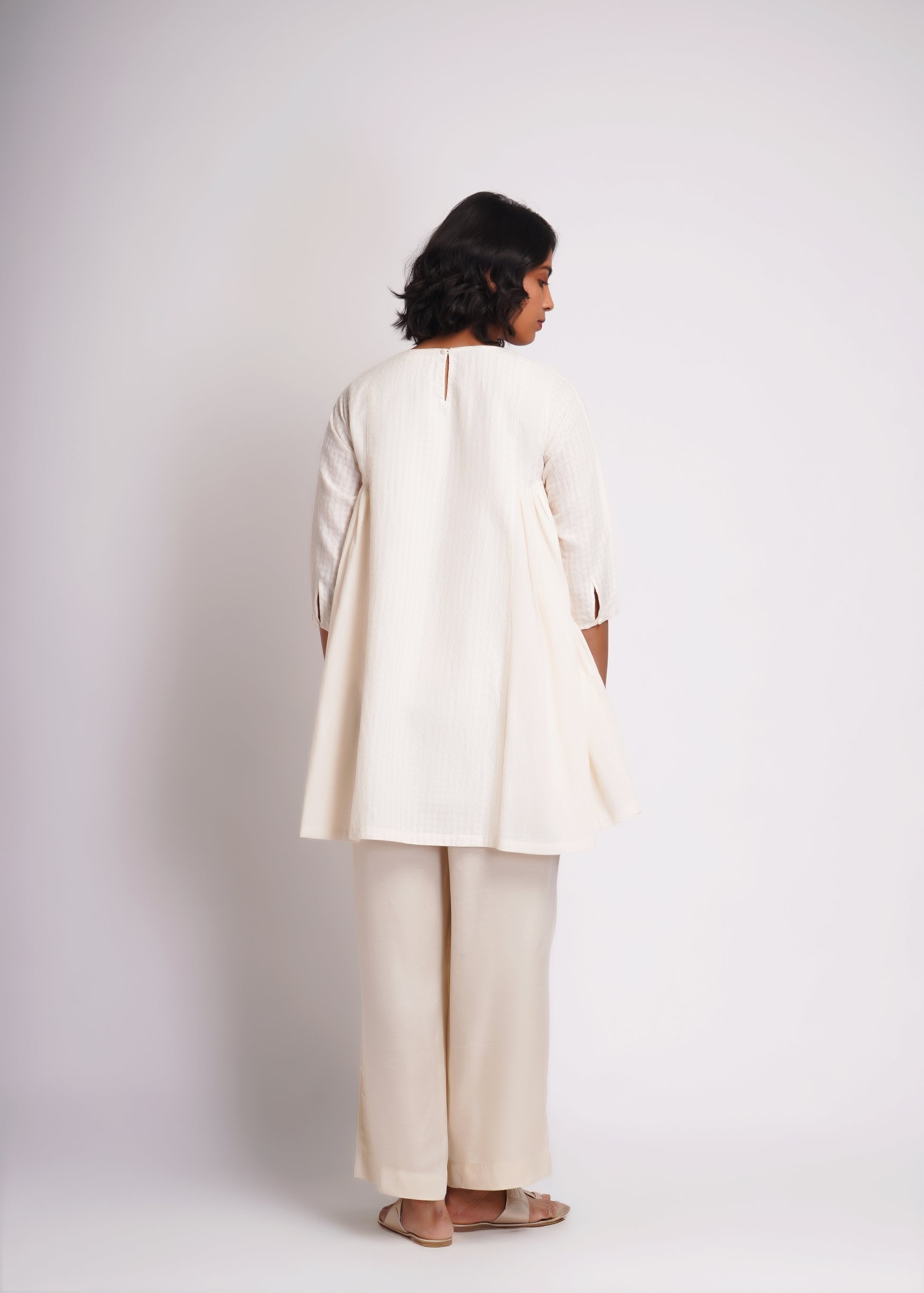 Long top co-ord set, made in hand spun cotton and silk blend textured fabric.