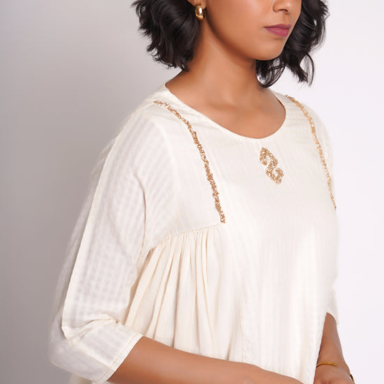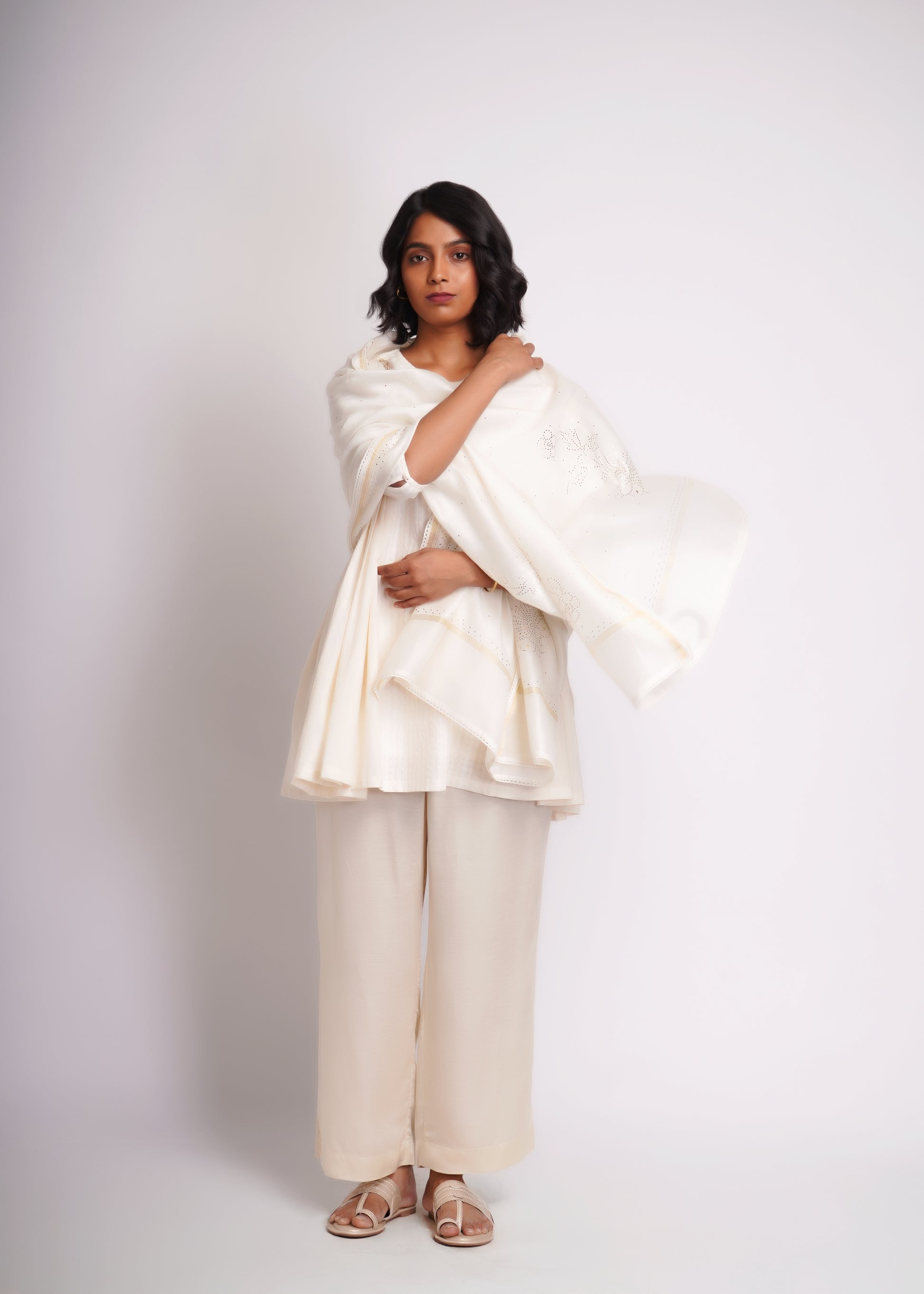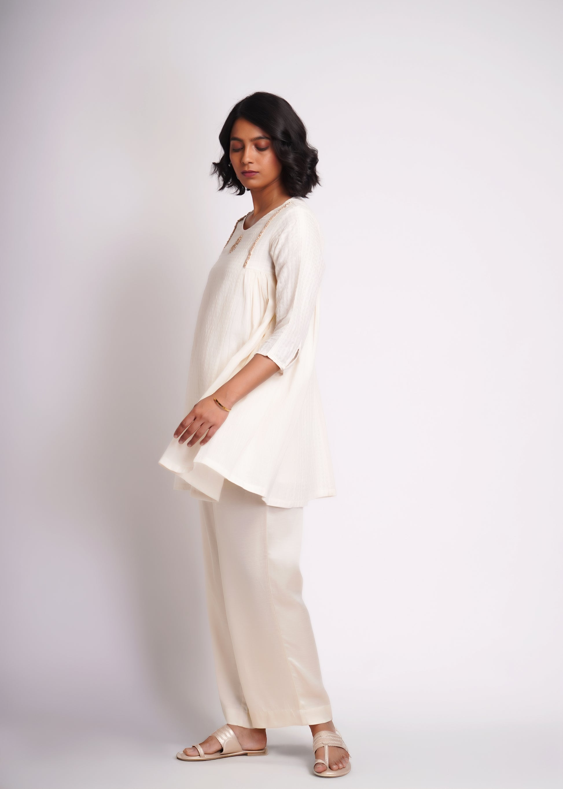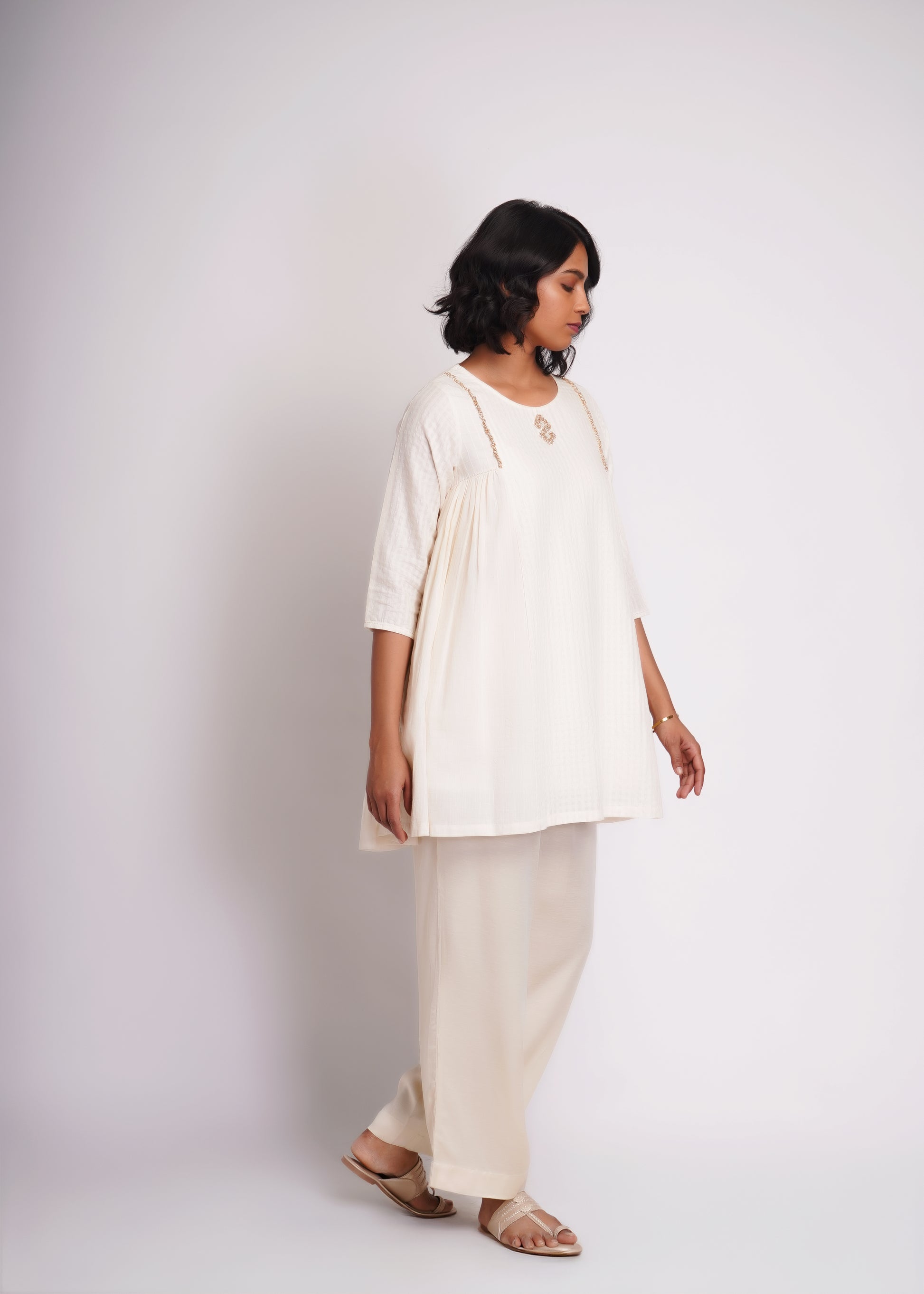 Long top co-ord set, made in hand spun cotton and silk blend textured fabric.